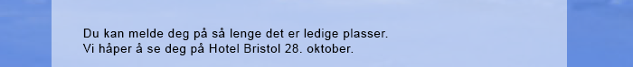 Har du ennå ikke meldt deg på til sikkerhetsseminaret 28. oktober? Følg lenken og registrer deg til arrangementet, det er fortsatt ledige plasser.